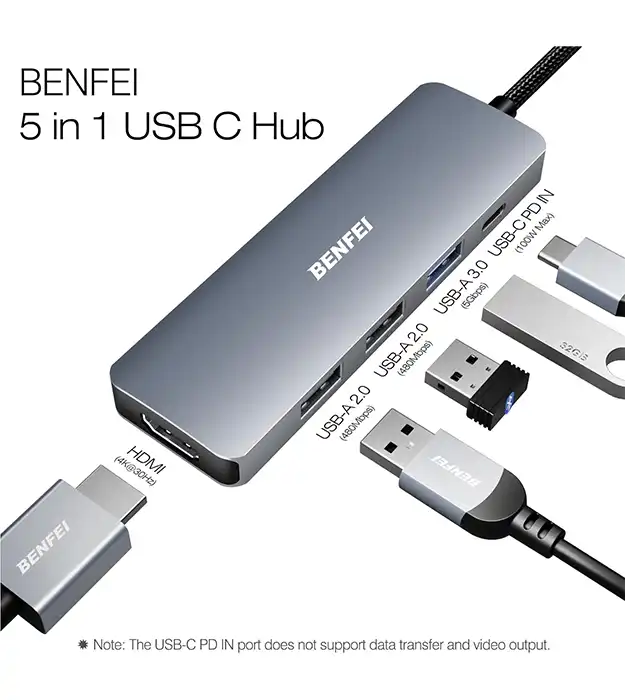 BENFEI 5-u-1 USB-C Hub – Višenamenski, moćan i kompaktan dodatak za vaše uređaje
