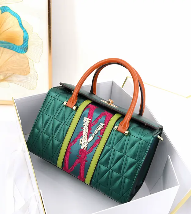 Torba je izrađena od visokokvalitetne PU kože sa dijamantskim prošivom i metalnim akcentima koji reflektuju svetlost i pažnju.