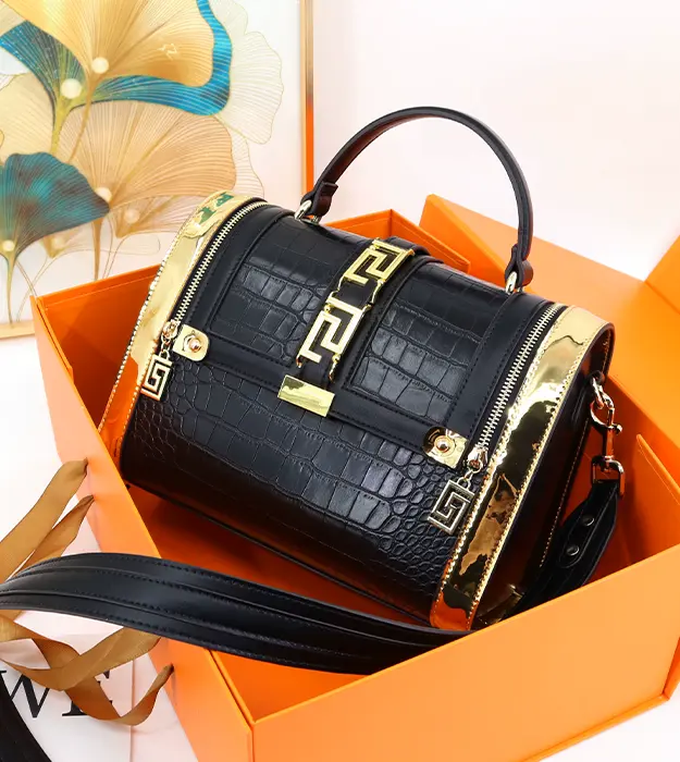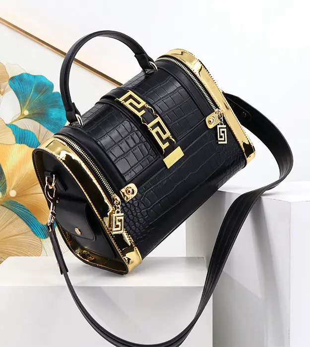 Materijal spoljašnjosti PU koža visokog kvaliteta sa reljefnim croco uzorkom i zlatnim metalnim detaljima