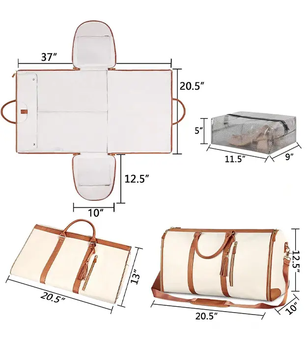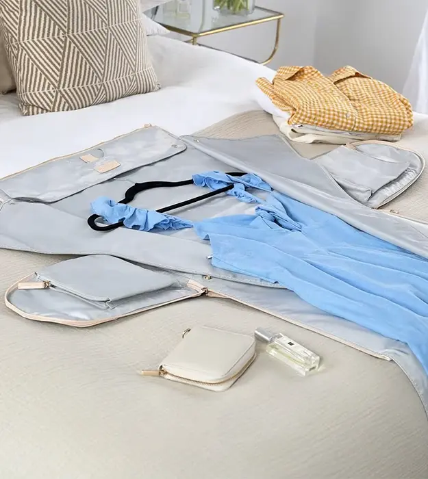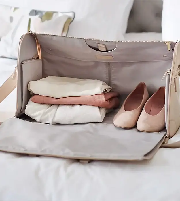 Unutrašnji raspored pruža poseban deo za odelo, sako ili haljinu, uz dodatne pregrade za obuću, kozmetiku, elektroniku i dokumenta.