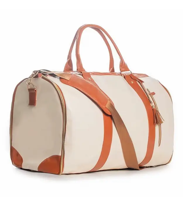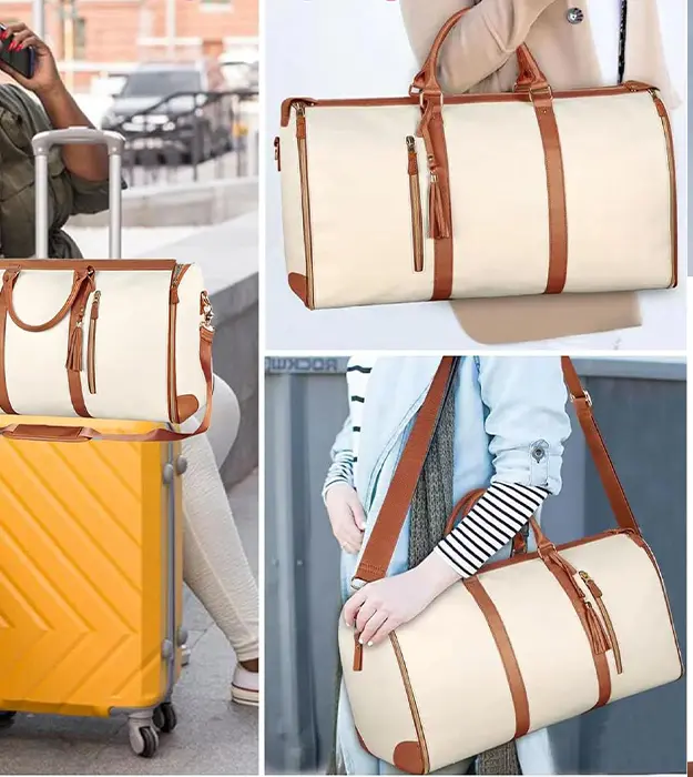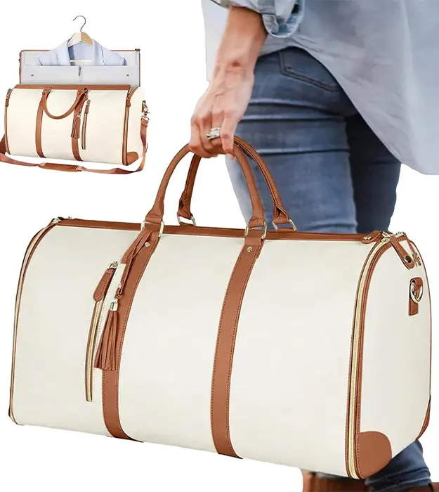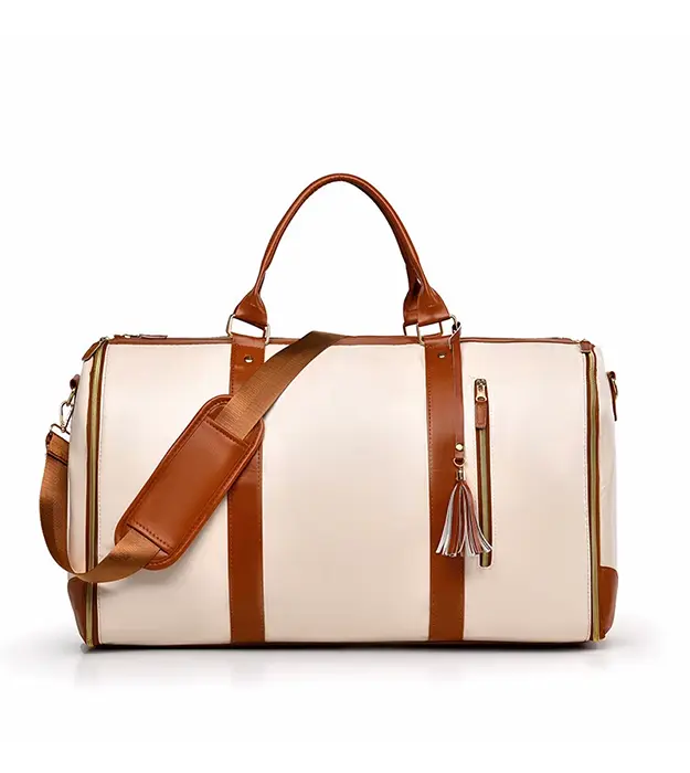 Kombinacija bele i karamel kože donosi vizuelnu lakoću i sofisticiran kontrast, dok funkcionalnost omogućava da svako putovanje izgleda jednostavno.